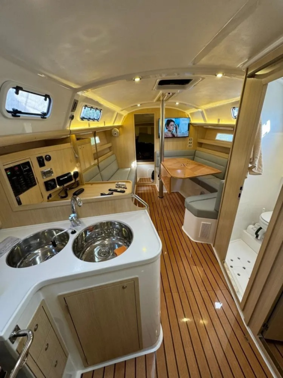 Delta 36 R$ 1.270.000 Categoria Veleiros Fabricante Delta Yacht Condição Ano 2024 Comprimento 11,1 m | 36,3 pés Localização Brasil - São Paulo - Caraguatatuba Publicado em 19/05/2025 Vendedor Fábio Augusto Celular +55 47 99 662 2113 Entre em Contato Descrição *ESPECIFICAÇÕES TÉCNICAS* Designer: Nestor Vólker. Comprimento total: 11,00 m Boca: 3,66 m Deslocamento: 5.950 kg. ? Material Casco: Poliéster Isofitálico com fibra de vidro. Convés construído em Poliéster com núcleo em espuma de PVC Leme de fibra de vidro com resina epóxi. ? Quilha semi-elíptica com bulbo de ferro de 2.670 kg. ? *MOTORIZAÇÃO* Motor: Volvo Penta Modelo D130S 30 HP. Tanque de diesel: 150 litros em aço inox. Sistema de escapamento e isolamento acústico *VELARIA / MASTREAÇÃO* Vela mestra em Dacron com 02 rizos. Vela Genoa Pau de Spi Enrolador de genoa Battencar Burro rígido de mola Mastro de alumínio, seção de 200 mm. Estaiamento: cabo de aço inox 1 x 19 com esticadores Holt Nautos. 02 catracas 48 02 catracas 40 01 catraca elétrica *ELETRÔNICOS* Chartplotter Raymarine Piloto automático Raymarine Estação de vento Raymarine Rádio VHF Raymarine Rádio AM/FM Tridata Raymarine Controle de ar-condicionado MarinAire *ELÉTRICA* 03 baterias de 105 AH 01 bateria de 65 AH. Placa solar Painel elétrico Arieltek P03 Inversor Technomaster TM R1 Ar-condicionado Ventiladores Luzes de led Voltímetro para 02 bancos de bateria Cabos elétricos em cobre com isolamento de estanho Sistema AC 110V com inversor de 2000W. ? Tomadas internas 110W 02 tomadas de 12 volts Shore Power *HIDRÁULICA* Armazenamento de água doce: 385 litros em 03 tanques. ? Sistema de distribuição com bomba de água pressurizada. ? 01 bomba de água pressurizada Jabsco 01 bomba elétrica no poceto 01 bomba manual Boiler 20 litros Sanitário hidráulico elétrico. *ANCORAGEM / FUNDEIO* Guincho de âncora Lewmar 1000w Âncora Bruce 15 kg 25 metros de corrente calibrada 40 metros de cabo *SALVATAGEM / APOIO* Bote de 2,40 m Motor de popa Mercury 9.9 HP Salvatagem completa para 7 pessoas *INFORMAÇÕES ADICIONAIS* Geladeira de 140 litros Fogão 02 bocas Estofados em espuma poliuretano com tratamento antifúngico. ? Sistema de som/imagem com Smart TV. ? Plataforma de popa rebatível Churrasqueira de inox Targa de inox Enviar para um amigo Avaliar vendedor Download PDF Denunciar abuso Anúncios que você pode gostar Skipper 30 2010 R$ 435.000 Skipper 30 2010 R$ 435.000 Cougar Intermarine 42 +20 anos R$ 370.000 Magnum 230 2008 R$ 110.000 SEDNA 335 2006 R$ 540.000 Ferretti 380 2003 R$ 900.000 Singular 290 2012 R$ 280.000