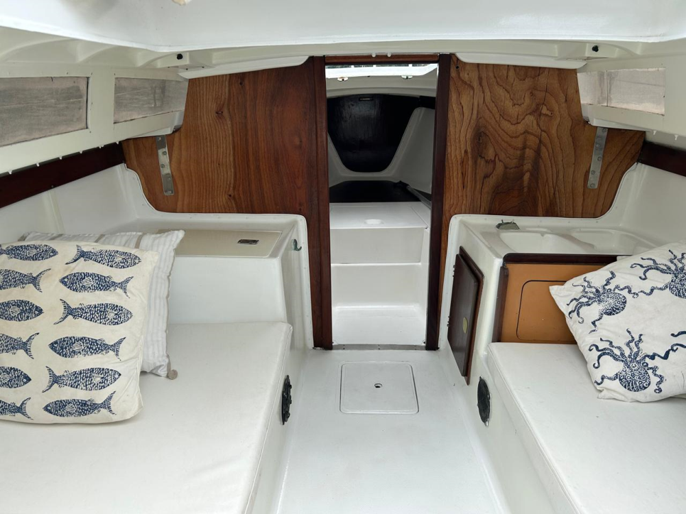 Gaivota 23 R$ 78.000 Categoria Veleiros Fabricante Carbrasmar Condição Ano 0 Comprimento 7,0 m | 23,1 pés Localização Brasil - Rio de Janeiro - Angra dos Reis Publicado em 19/03/2025 Vendedor Monica soffiatti Celular +55 21 9987 1643 Entre em Contato Descrição Vendo veleiro, gaivota 23, reformado com motor novo 20 horas. Veleiro de cruzeiro com cabine, amplamente reconhecido no meio náutico por sua robustez e conforto. Fabricado pela tradicional Carbrasmar e projetado por José Ferrer, este modelo é ideal para quem busca segurança, conforto e navegabilidade, com fácil manutenção. ESPECIFICAÇÕES TÉCNICAS Modelo: Carbrasmar Gaivota 23 Ano: 1980 Comprimento: 7,00 m (23 pés) Boca: 2,45 m Calado: 0,65 m Peso: 1.200 kg Casco: Fibra de vidro MOTORIZAÇÃO Motor de popa Mercury 8hp, rabeta longa, com pouco uso Tanque de combustível: 12L VELAME Vela mestra Olympic Sails (em ótimo estado, em uso) Genoa North Sails (em ótimo estado, em uso) Balão assimétrico novo Balão simétrico com pau de spinnaker EQUIPAMENTOS E ACESSÓRIOS Estofados da cabine e do cockpit em ótimo estado Bimini Sistema elétrico refeito em 2023 Carregador inteligente com painel elétrico e indicador de carga 01 Bateria Moura 100Ah (nova - 2024) 01 Placa solar de 160W com controlador MPPT Vaso sanitário manual Pia interna Caixa de gelo embutida Bomba de porão elétrica e manual Luzes internas e de navegação em LED 02 catracas e 02 mordedores em perfeito funcionamento ACESSÓRIOS DE NAVEGAÇÃO E SEGURANÇA 03 defensas 01 manivela (manicaca) 01 croque Âncora Bruce 7,5 kg com corrente, lançante e 35 metros de cabo 05 coletes salva-vidas 01 bóia de salvatagem Escada externa OUTRAS INFORMAÇÕES Documentação em dia (Mar Interior) Fundo com tinta de cobre e costado feitos em dezembro/2022 Localização: Angra dos Reis - RJ Veleiro de cruzeiro com cabine, amplamente reconhecido no meio náutico por sua robustez , conforto e excelente desempenho. Fabricado pela tradicional Carbrasmar e projetado por José Ferrer, este modelo é ideal para quem busca segurança, conforto e navegabilidade, com fácil manutenção. ESPECIFICAÇÕES TÉCNICAS Modelo: Carbrasmar Gaivota 23 Ano: 1980 Comprimento: 7,00 m (23 pés) Boca: 2,45 m Calado: 0,65 m Peso: 1.200 kg Casco: Fibra de vidro MOTORIZAÇÃO Motor de popa Mercury 8hp, rabeta longa, com pouco uso Tanque de combustível: 12L VELAME Vela mestra Olympic Sails (em ótimo estado, em uso) Genoa North Sails (em ótimo estado, em uso) Balão assimétrico novo Balão simétrico com pau de spinnaker EQUIPAMENTOS E ACESSÓRIOS Estofados da cabine e do cockpit em ótimo estado Bimini Sistema elétrico refeito em 2023 Carregador inteligente com painel elétrico e indicador de carga 01 Bateria Moura 100Ah (nova - 2024) 01 Placa solar de 160W com controlador MPPT Vaso sanitário manual Pia interna Caixa de gelo embutida Bomba de porão elétrica e manual Luzes internas e de navegação em LED 02 catracas e 02 mordedores em perfeito funcionamento ACESSÓRIOS DE NAVEGAÇÃO E SEGURANÇA 03 defensas 01 manivela (manicaca) 01 croque Âncora Bruce 7,5 kg com corrente, lançante e 35 metros de cabo 05 coletes salva-vidas 01 bóia de salvatagem Escada externa OUTRAS INFORMAÇÕES Documentação em dia (Mar Interior) Fundo com tinta de cobre e costado feitos em dezembro/2022 Localização: Angra dos Reis - RJ Enviar para um amigo Avaliar vendedor Download PDF Denunciar abuso Anúncios que você pode gostar Skipper 30 2010 R$ 435.000 Skipper 30 2010 R$ 435.000 Cougar Intermarine 42 +20 anos R$ 370.000 Magnum 230 2008 R$ 110.000 SEDNA 335 2006 R$ 540.000 Ferretti 380 2003 R$ 900.000 Singular 290 2012 R$ 280.000