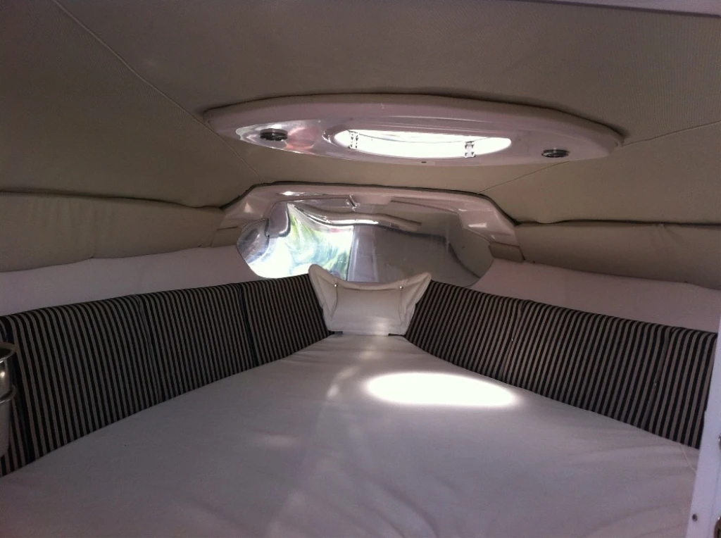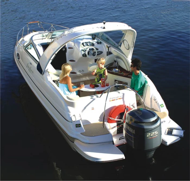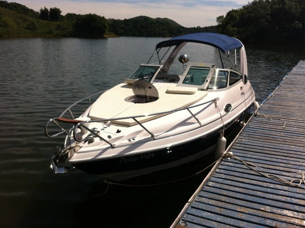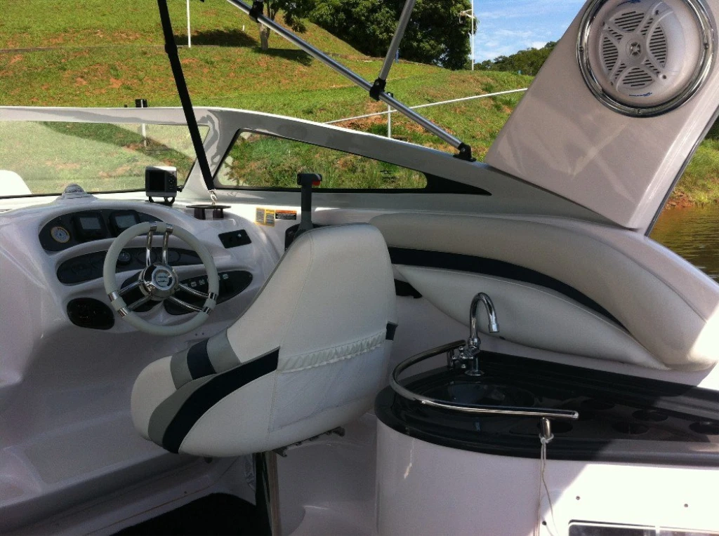 Melhor barco que tive, combinação perfeita para enseadas, bahias e aguas abrigadas, com boca de 2,50 não balança deixando de ser necessário uso de flaps, com capacidade para 10 ocupante dá tranquilamente par sair com a familia ou amigos, a cabine fechada proporciona privacidade e conforto tanto dia como para pernoitar, ou se você tem crianças pequenas é ideal, o banheiro fechado com 1,5m de pé direito é gigante se comparado com os demais barcos dessa categoria, economica chega na areia pois o motor de popa proporciona navegar com até 0,4 de calado. excelente opção pelo custo e valor de manutenção.