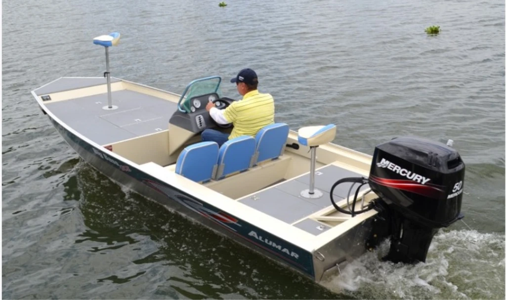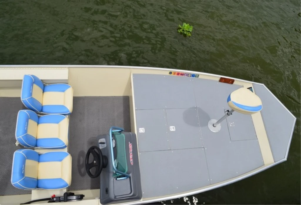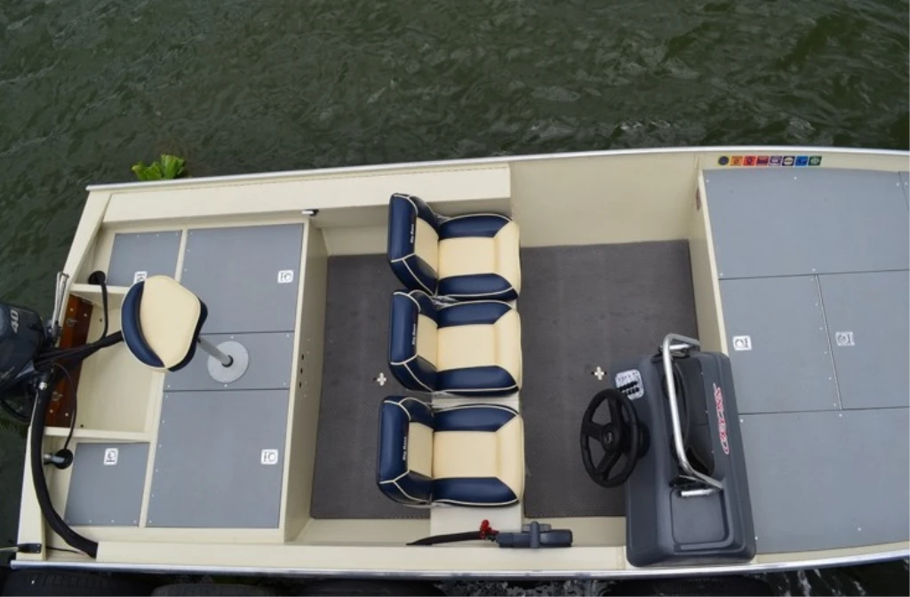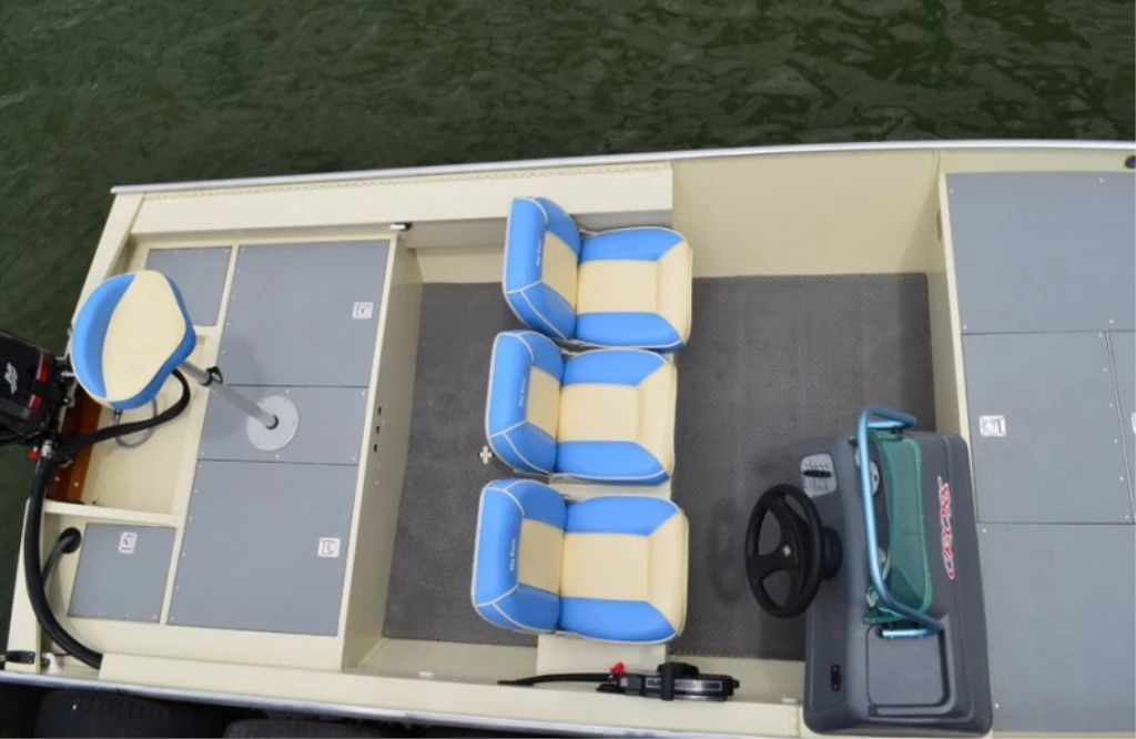 As plataformas elevadas, equipadas com selins giratórios com regulagem de altura, proporcionam conforto e praticidade aos pescadores esportistas. Os mesmos são removíveis, podendo ser acomodados juntamente com as hastes sob as plataformas.