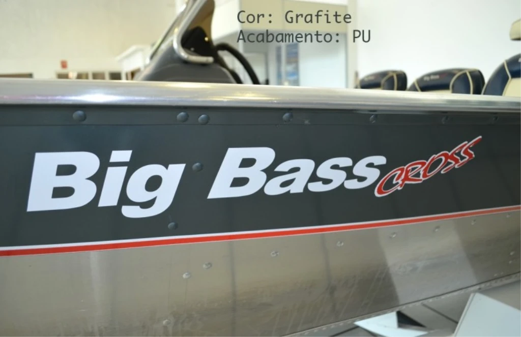BIG BASS CROSS - Bass boat compacto que une a versatilidade de um resistente e leve casco de alumínio, com diversas funcionalidades para a pesca esportiva. Dentre elas, um planeio rápido que garante agilidade e economia para mudar de pontos de pesca. Veja os resultados do teste de performance e planeio na área de downloads.