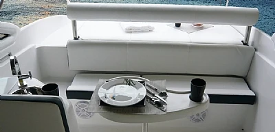 Casco muito hidrodinâmico, corta bem as ondas e não precisa de muita potencia para atingir velocidades altas. leva com folga 8 pessoas.