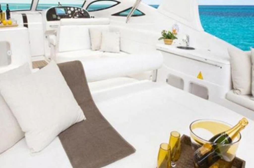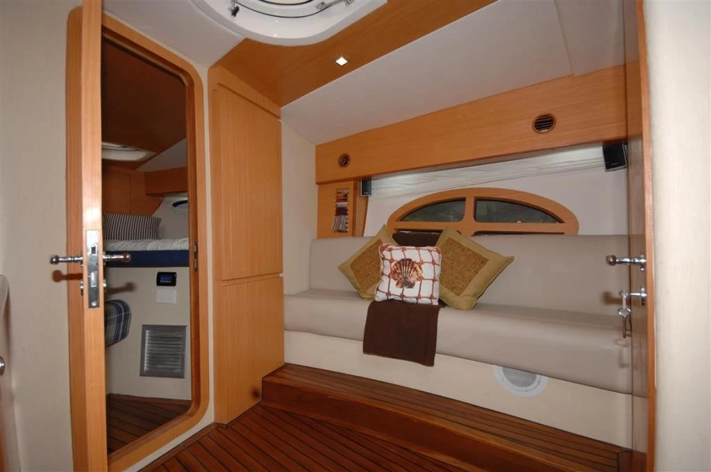 COM ARMARIOS E UM SOFA PARA DUAS PESSOAS NA POPA.