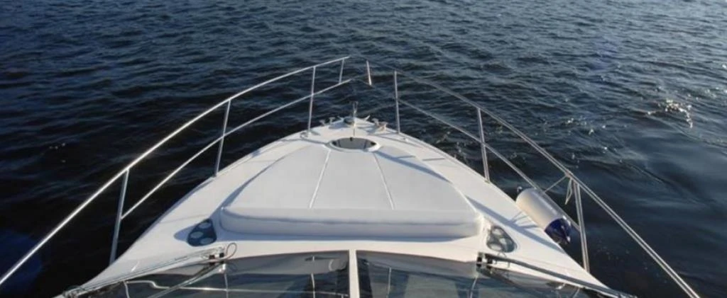 - Dois amplos acessos pelas laterais favorecem a chegada à proa, que é circundada por guarda-mancebos em inox. Amplo solário