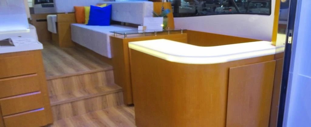 - Sofás revestidos em tecido padrão da embarcação