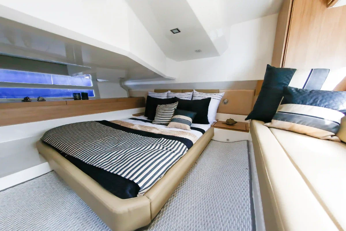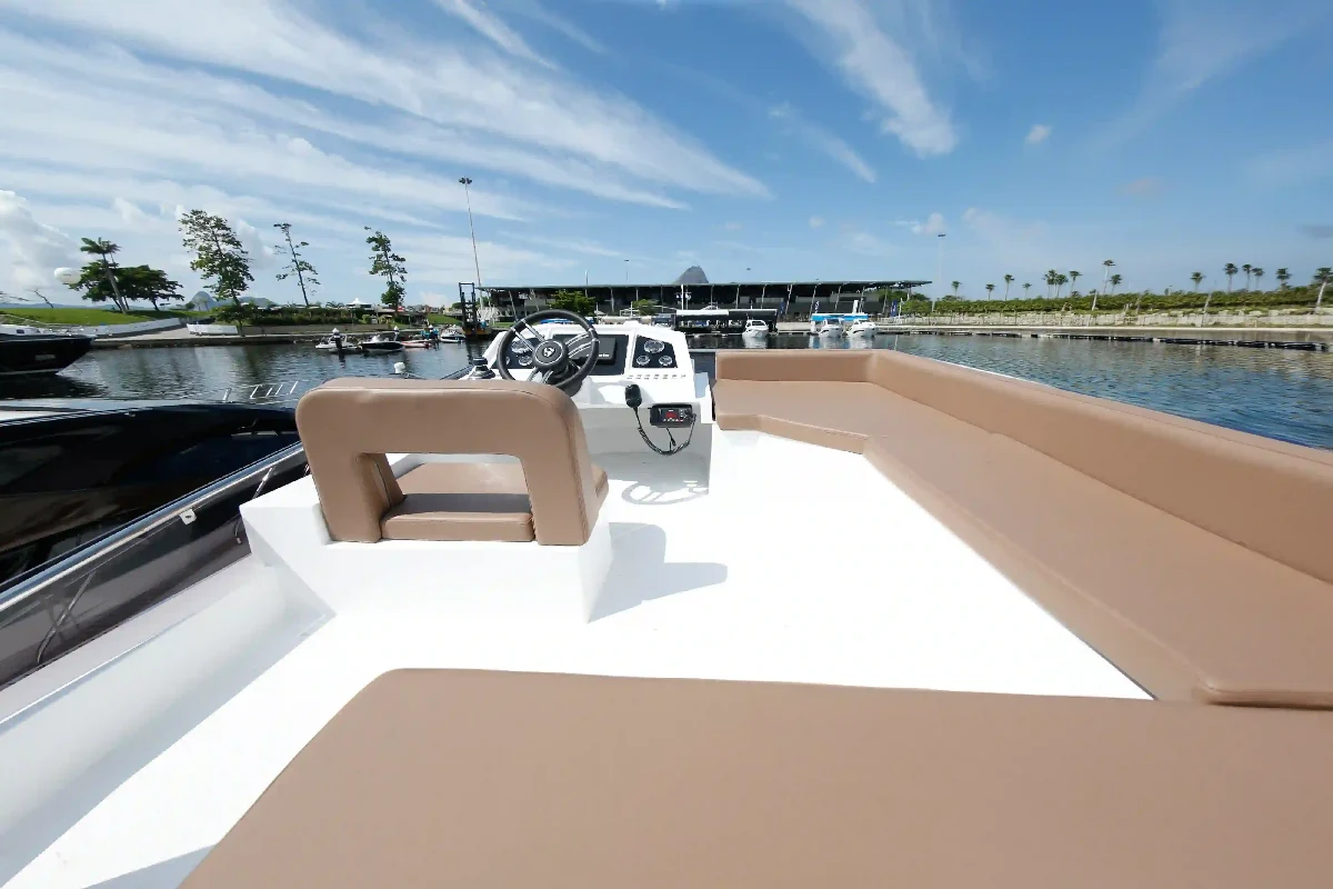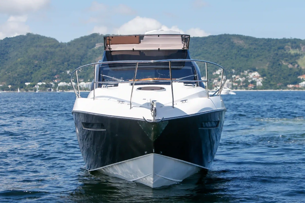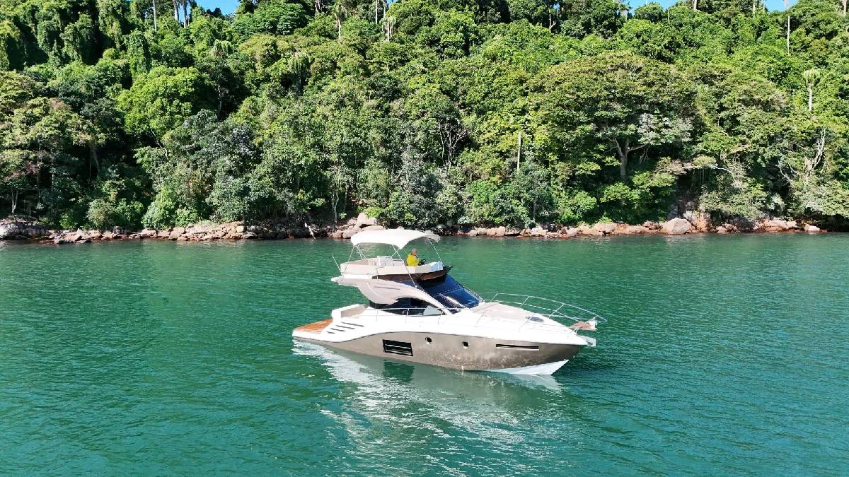 No interior, o acabamento primoroso e a atenção aos detalhes revelam o DNA premium da marca, garantindo pernoites confortáveis e uma experiência de hotelaria sobre as águas. Em termos de performance, a 420 Sport Fly entrega uma navegação estável e ágil, sendo a escolha ideal para quem busca elegância e versatilidade para explorar o litoral brasileiro com estilo.