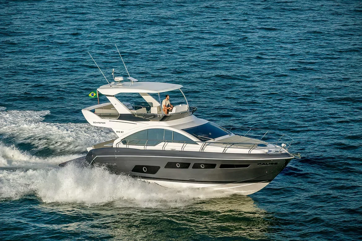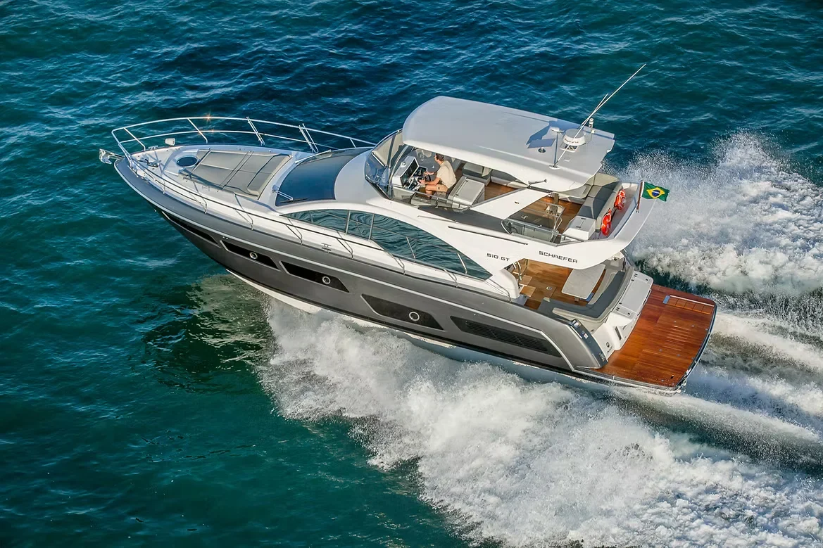 A **Schaefer 510 GT** é uma expressão máxima de sofisticação e engenharia da Schaefer Yachts, consolidando-se como um dos modelos mais desejados do mercado náutico brasileiro. Com o DNA "Gran Turismo", esta embarcação une linhas externas arrojadas a um design contemporâneo que privilegia a estética sem abrir mão da funcionalidade.