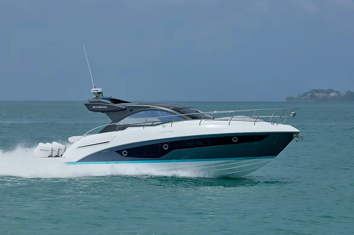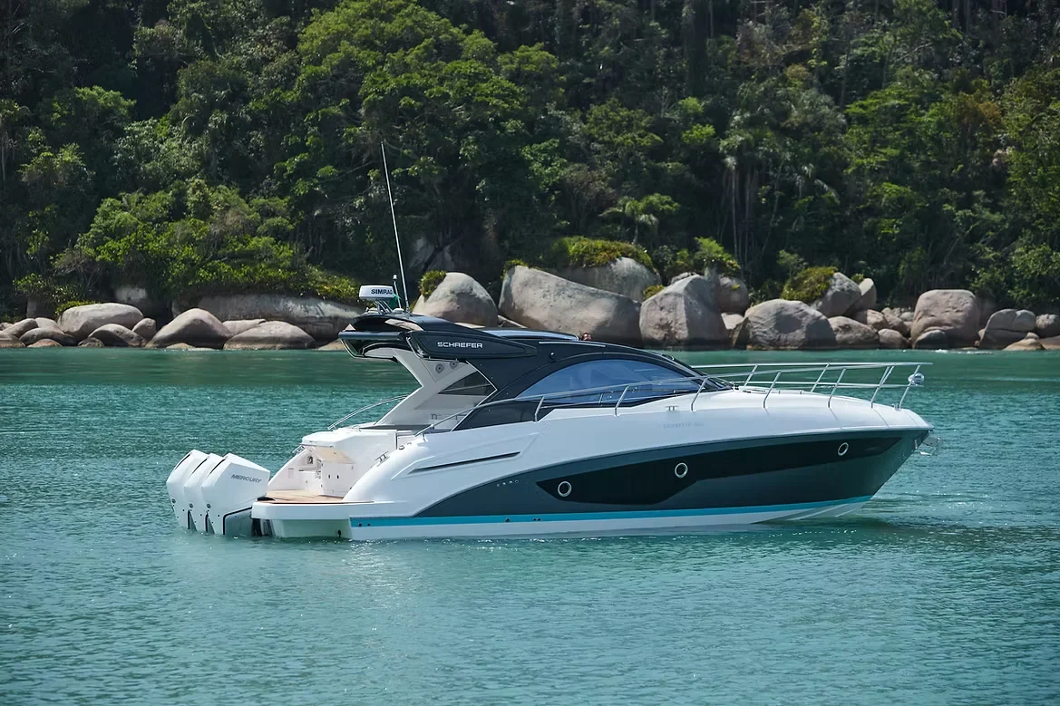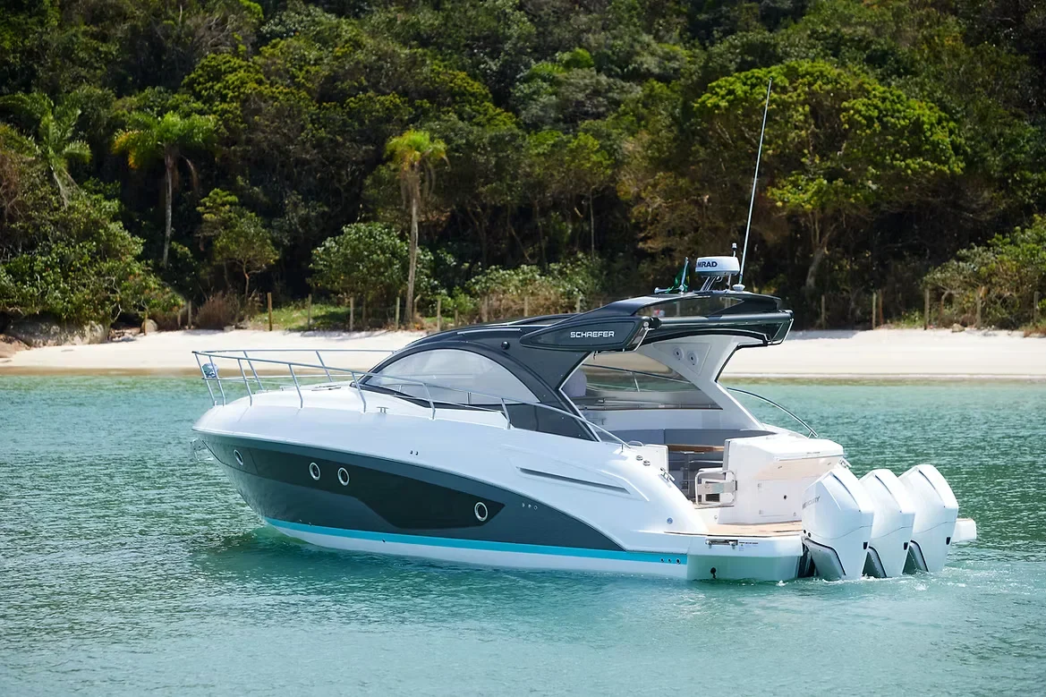 A **Phantom 400** é um verdadeiro ícone da **Schaefer Yachts**, consolidando-se como uma das embarcações mais desejadas e bem-sucedidas do mercado náutico brasileiro. Seu design "Hard Top" privilegia linhas esportivas e uma silhueta aerodinâmica, conferindo um visual atemporal que equilibra perfeitamente sofisticação e arrojo.