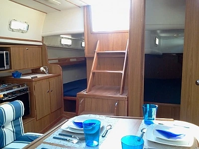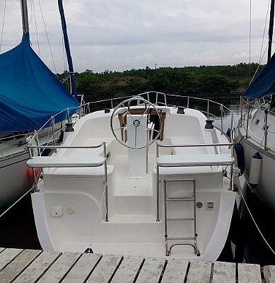 Veleiro de 34’ pés, com boca de 3,56 m, popa ousada, conforto no Cockpit inigualável, para um veleiro deste tamanho. As janelas laterais medem 2,00 m de comprimento, por 0,40 cm de largura, teto solar fixo de 1,36m x 0,36 m. Internamente o veleiro também é muito confortável, as camas das cabines, tanto boreste, quanto bombordo tem 1,58 m largura x 2,00, de comprimento, onde dormem duas pessoas longitudinalmente com o mesmo conforto de uma cama residencial, com altura da cama ao teto de 0,80 cm, é o único veleiro a venda no mercado, de 34’ pés com quatro cabines. Se você decidiu comprar um veleiro novo, com ótimo preço, conforto tanto internamente, como na hora de velejar, procure o nosso estaleiro.