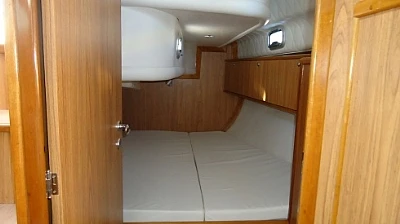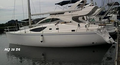 Veleiro de 38’ pés, com grandes janelas laterais com 2,30m de comprimento, por 0,40 cm de largura, teto solar fixo com 1,63 m de comprimento por 0,41 cm de largura, proporcionando maior luminosidade e dando maior sensação de amplitude na cabine central, o pé direito também está mais alto com 2,05 m. Por não ter fosso no Cockpit, a altura nas cabines de popa, da cama até o teto é de 0,85 cm, proporcionando um ambiente mais amplo, sem que as pessoas sintam-se sufocadas ou apertadas, é um veleiro que tem três cabines, sendo duas suítes com banheiro e Box. Se você decidiu comprar um veleiro novo, com ótimo preço, conforto tanto internamente, como na hora de velejar, você não vai encontrar nenhum veleiro a venda, como os do nosso estaleiro.