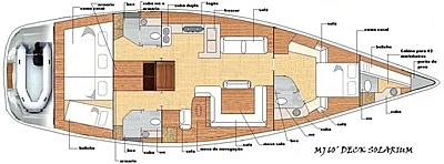 Fast Cruiser, também com o convés Deck Solarium, o veleiro tem 03 ou 04 suítes com cama de casal, ou opcional com 02 beliches no lugar na cada de casal. Na proa mais uma suíte para 2 marinheiros, com entrada independente, 2 conjuntos de sala, grande mesa de navegação, bar, espaço para TV de 42’, cozinha completa, garagem para bote na popa com fechamento hidráulico.
