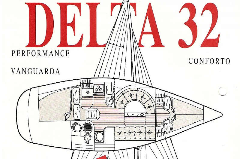 O Delta 32 é um veleiro de linhas elegantes, costado alto e ótimo acabamento. O cockpit tem espaço para seis pessoas sentadas sem apertos. O timão deixa o veleiro mais gostoso de navegar. Os cabos, as catracas e os mordedores estão sempre ao alcance das mãos, facilitando bastante a velejada.