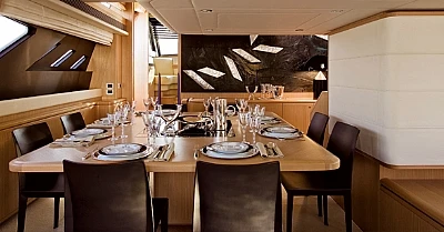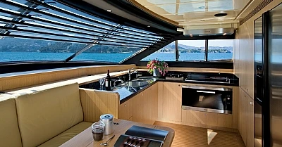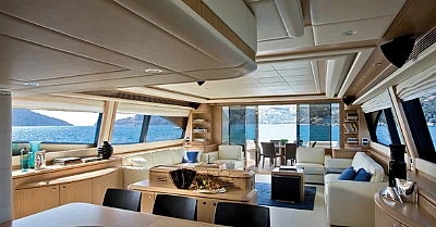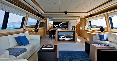 O Ferretti 881 RPH manteve a excelência de sua estrutura, com o adicional de um deck superior com uma cabine para o piloto. Uma TV de plasma de 32 polegadas divide o salon da área de jantar, que contém uma mesa capaz de acomodar 8 pessoas confortavelmente. Essas e outras qualidades fazem do Ferretti 881 RPH um yacht dos sonhos.