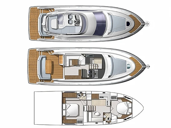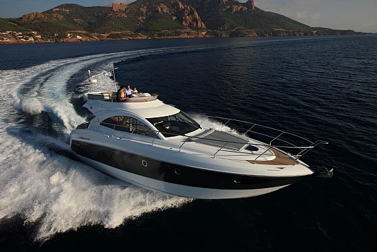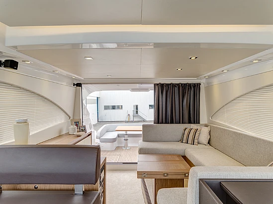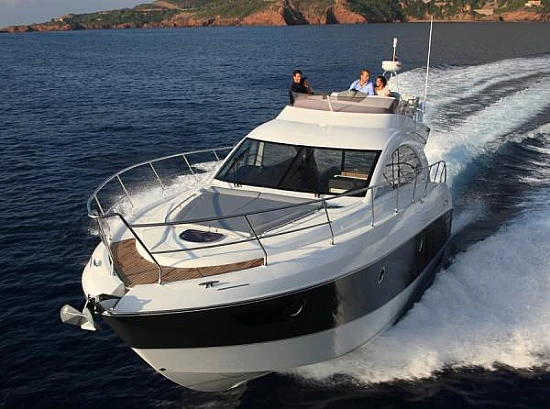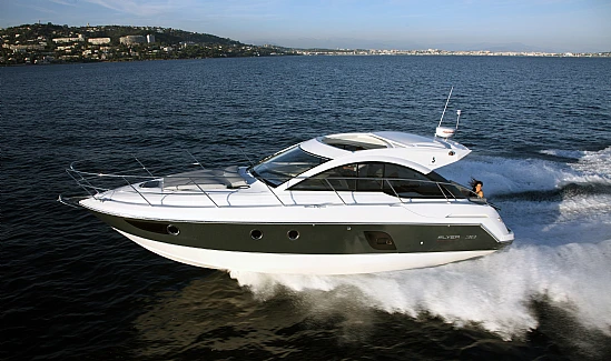 A Beneteau estabelece um novo padrão de luxo para sua nova linha de Express Cruisers, Flyer Gran Turismo. São usados materiais como a madeira Alpi-Walnut, couro alcantara®, madeira maciça, móveis laqueados e outros. Alem desses materiais standard, esse modelo completo vem equipado com 2 telas E120W no comando com joystick,