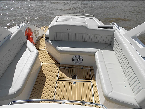 Com uma nova opção de espaço e interação à bordo de uma lancha, a MEGA 32 possui diferenciais que com certeza irá cativar você. Como característica marcante, a MEGA 32 possui o conceito de comando central, permitindo maior liberdade de acesso para o grande solário de proa.