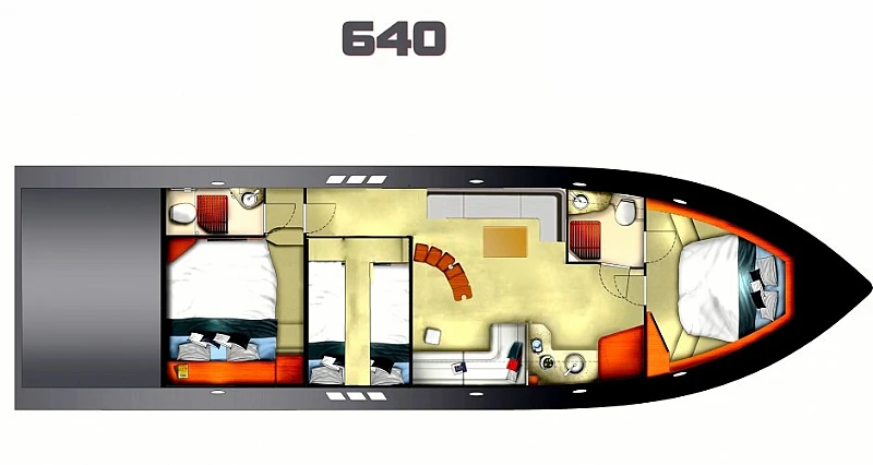 Ar Condicionado De 5.000 BTUS [4]: Na Suíte De Proa, Na Suíte De Popa, Quarto de Solteiro e Cabine de Marinheiro;